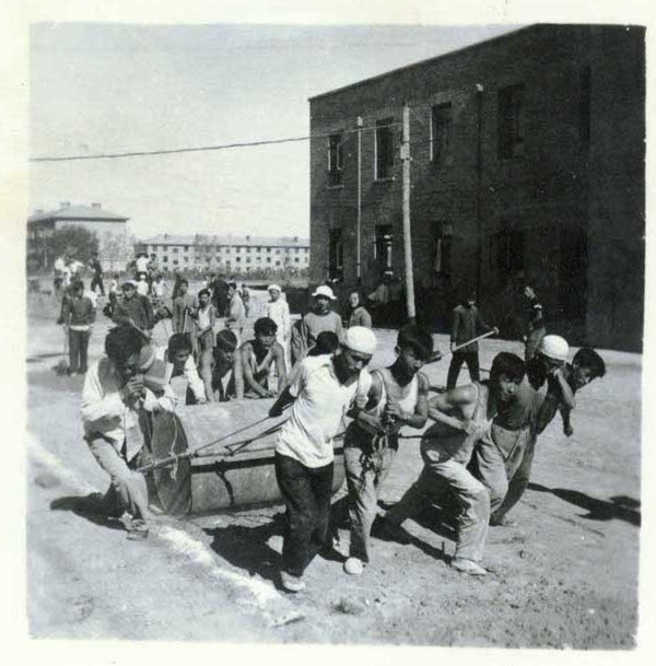 虽然条件如此艰苦,但丝毫没有磨灭农大人干事创业的热情。校园基建不好,师生便自己动手,修围墙、修路、平整操场的活都是师生们亲力亲为。当时为了修建校园内的四条主干道,师生分成烧火、炒料、送料、压路四个组,半天劳动、半天上课,两班倒、不停工。按照技术人员的要求,师生们先将路面下挖25公分,第一层铺石子,然后用三合土垫平,再用磙子压实压平。三合土中的沙子是从黄羊河拉来的,拉磙子全靠人力。